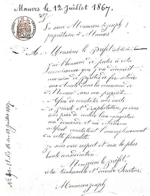 | les années ont passé... En 1980 avec René Rives (géologue prospecteur minier au BRGM) lors d'une prospection tactique nous découvrons une courte galerie et un affleurement de pyrite aurifère titrant 0.2 g /tonne (analyse BRGM). les années ont passé... En 1998 je consulte la série S aux archives de Privas et je trouve les demandes d'autorisation de prospection; la famille Moneron de Mauves ignorait l'existence de ces documents. les années ont passé... En octobre 2022 après une progression difficile dans ce ruisseau je redécouvre la courte galerie et l'affleurement de pyrite oxydée; où de la scheelite est présente. Le ruisseau des Aurets (Tournon 50 000°) recoupe des granites et des roches métamorphiques. La faille de Mauves affecte ces formations. La série métamorphique porte l'indice. ***** Les déclarations de prospection émanent de M Buisson fabricant de produits chimiques domicilié au 1 cours Verdun/Perrache à Lyon. Je me suis rendu à cette adresse (avec mes documents) et j'ai été aimablement reçu par un homme qui ma dit " nous sommes chirurgiens de père en fils dans cette maison et il n'y a jamais eu de Buisson fabricant de produits chimiques" Voilà une enquête pour le commissaire Maigret ! |
